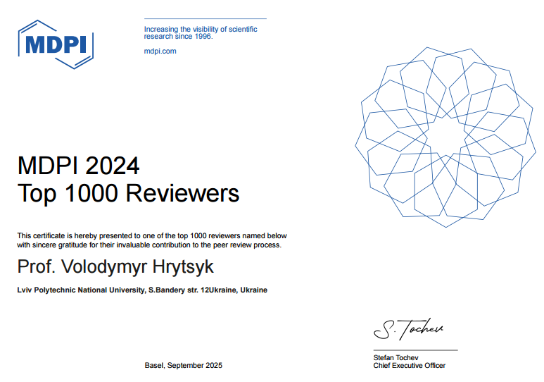 Professor Volodymyr Hrytsyk Received Honors from the Journal Association Q1-2: