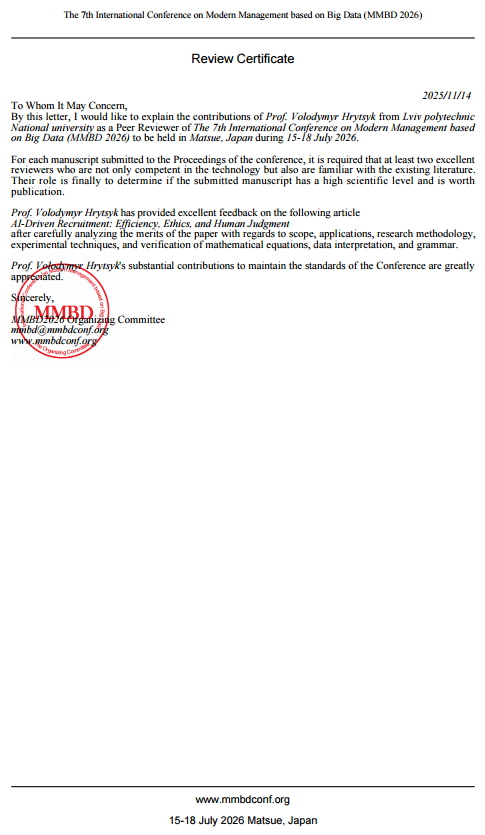 - Prof. V. Hrytsyk prepared and launched an international Workshop https://xr.net.ua/comet/call-for-papers.html;